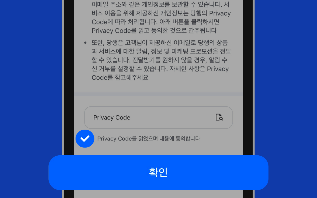 5단계: 개인정보 보호 약관을 확인한 후 동의하려면 체크박스를 선택하세요.
