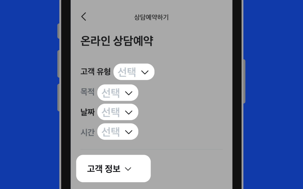 6단계: 고객유형, 상담 목적, 날짜, 시간, 고객 정보를 입력하세요.