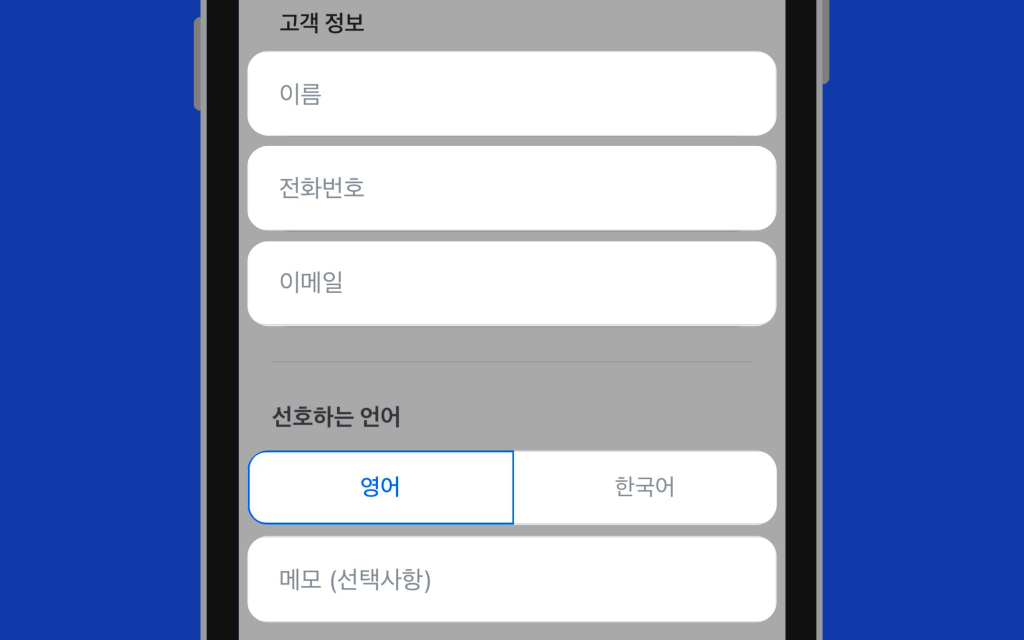 7단계: 이름, 전화번호, 이메일 주소, 선호하는 언어를 입력하세요. (로그인이 되어있다면, 자동으로 입력됩니다.)