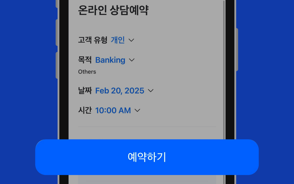 8단계: 모든 정보를 입력한 후 ‘예약하기’ 를 눌러 상담 예약을 완료하세요.