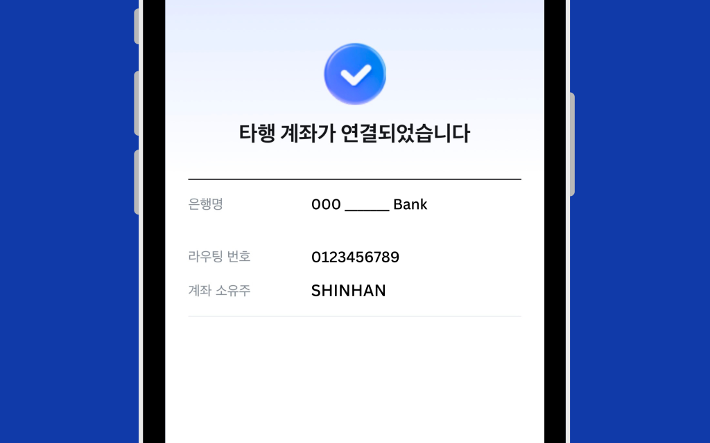 9단계: 다른 은행 계좌의 세부 정보를 확인하세요. (인증 기간, 라우팅 번호, 계좌 소유주 이름)신한은행에서 인증을 위해 1~3 영업일 이내 다른 은행 계좌로 소액이 입금이 진행됩니다.
